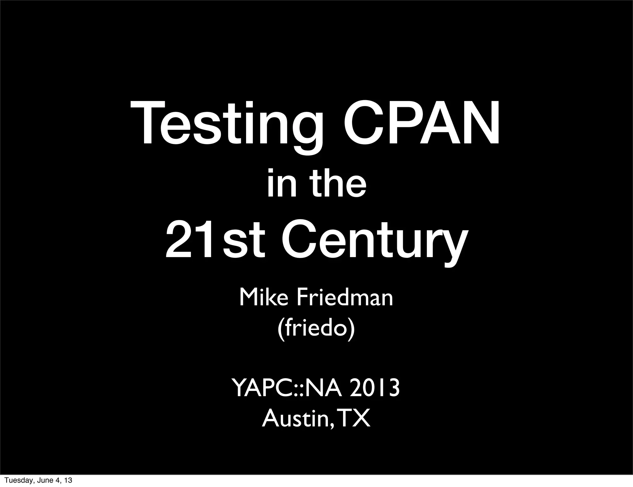 The document provides a brief history of testing on CPAN from 1987 to the present. It discusses the development of the Test Anything Protocol (TAP) and CPAN Testers for testing Perl modules. It then proposes the idea of CPANci, a continuous integration system for all of CPAN that would test each distribution in isolation on virtualized environments to avoid issues with CPAN Testers. The document outlines an approach using perlbrew and cpanminus to test each distribution on fresh Perl installations of different versions.