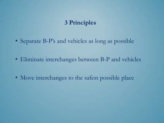 The document proposes changes to the Croton Point Avenue project to improve safety for bicyclists and pedestrians. It recommends extending bicycle paths along the north side of the avenue to connect to Benedict Boulevard and the train station. Separating bicycle paths from vehicles would avoid intersections and allow paths to be rerouted to safer areas. The changes could improve safety, traffic flow, and reduce costs while encouraging bicycle use.
