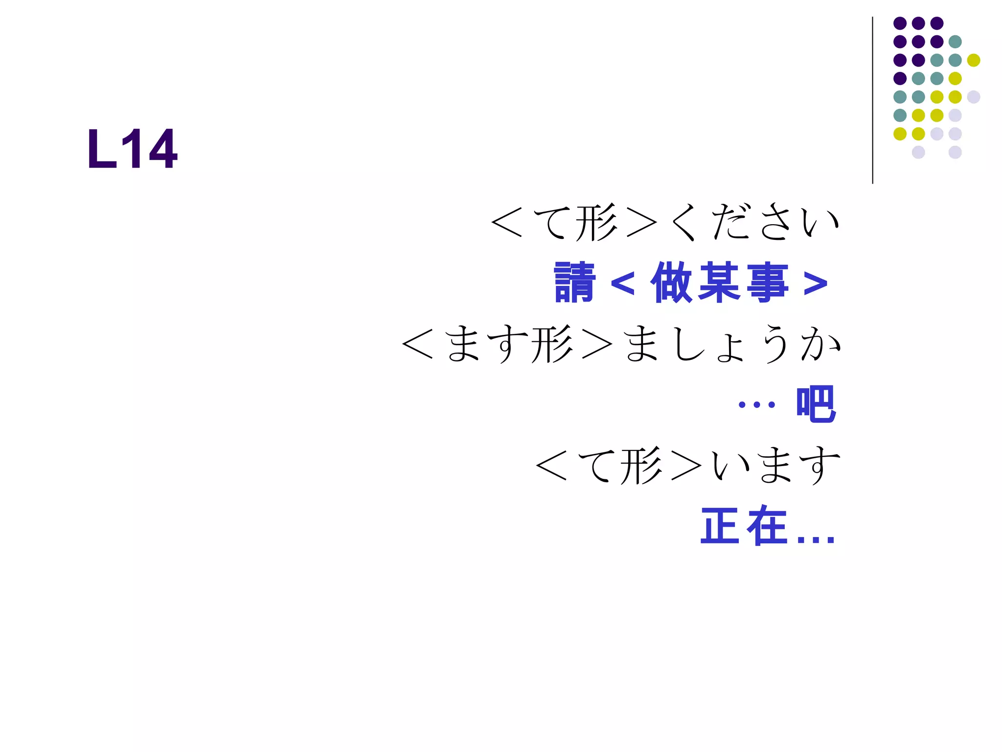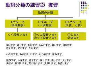 L14 動詞分類及びて形 ④ 友達に 話します 友達 と 日本語 で 話します 日本語 を 話しますか 友達 に 地図を見せます 新しい友達 に 名前を教えます 行き方を教えます 雨 が 降りました 先週北海道で雪が降りました 話します 見せます 教えます 降ります - 15.