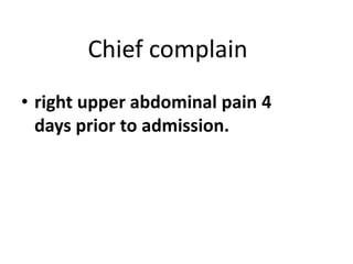 1. A 50-year-old man presented with 4 days of right upper abdominal pain, low-grade fever, and tea-colored urine.