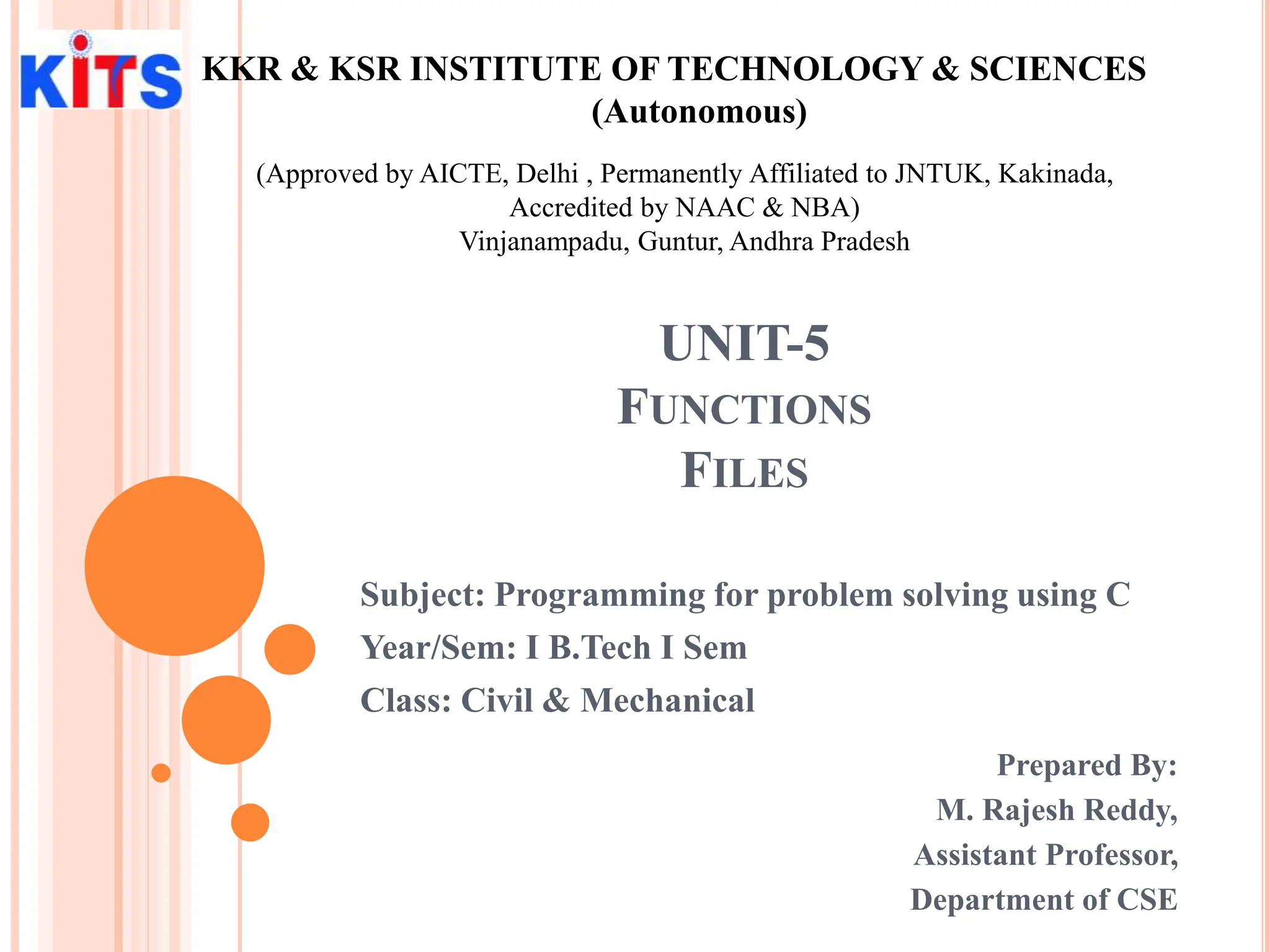 This document discusses functions in the C programming language. It begins by explaining the top-down design approach of breaking complex problems into smaller, modular parts called modules. It then defines functions as independent modules that perform specific tasks. Functions are declared with a return type and parameter list, defined with a body of code, and called by name with arguments. There are two main types of functions - library functions and user-defined functions. The document also covers function parameters, return values, and the different ways functions can be designed. It concludes by explaining the two techniques of passing arguments to functions: call by value and call by address.