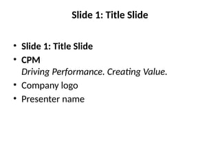 Purpose of CPM