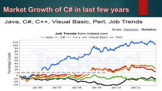 C# is a general-purpose, multi-paradigm programming language developed by Microsoft that uses the .NET framework. It is based on C and C++ but has a simpler syntax that is object-oriented and easy to understand. C# is widely used for developing desktop, mobile, web, gaming, AI, and IoT applications. There is strong demand for C# programmers, with the average salary being around $92,000 per year in the United States.