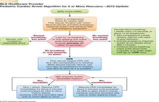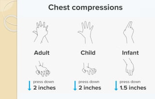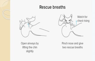 The document outlines essential information about Cardiopulmonary Resuscitation (CPR), a critical life-saving technique used in emergencies such as heart attacks or near drownings. It covers guidelines for both untrained and trained responders on how to effectively perform CPR, including the importance of chest compressions and rescue breaths, as well as the necessary equipment and proper positioning. Additionally, it discusses the indications, steps, signs of effective CPR, and post-CPR care, emphasizing that timely action can significantly enhance a patient's chances of survival.