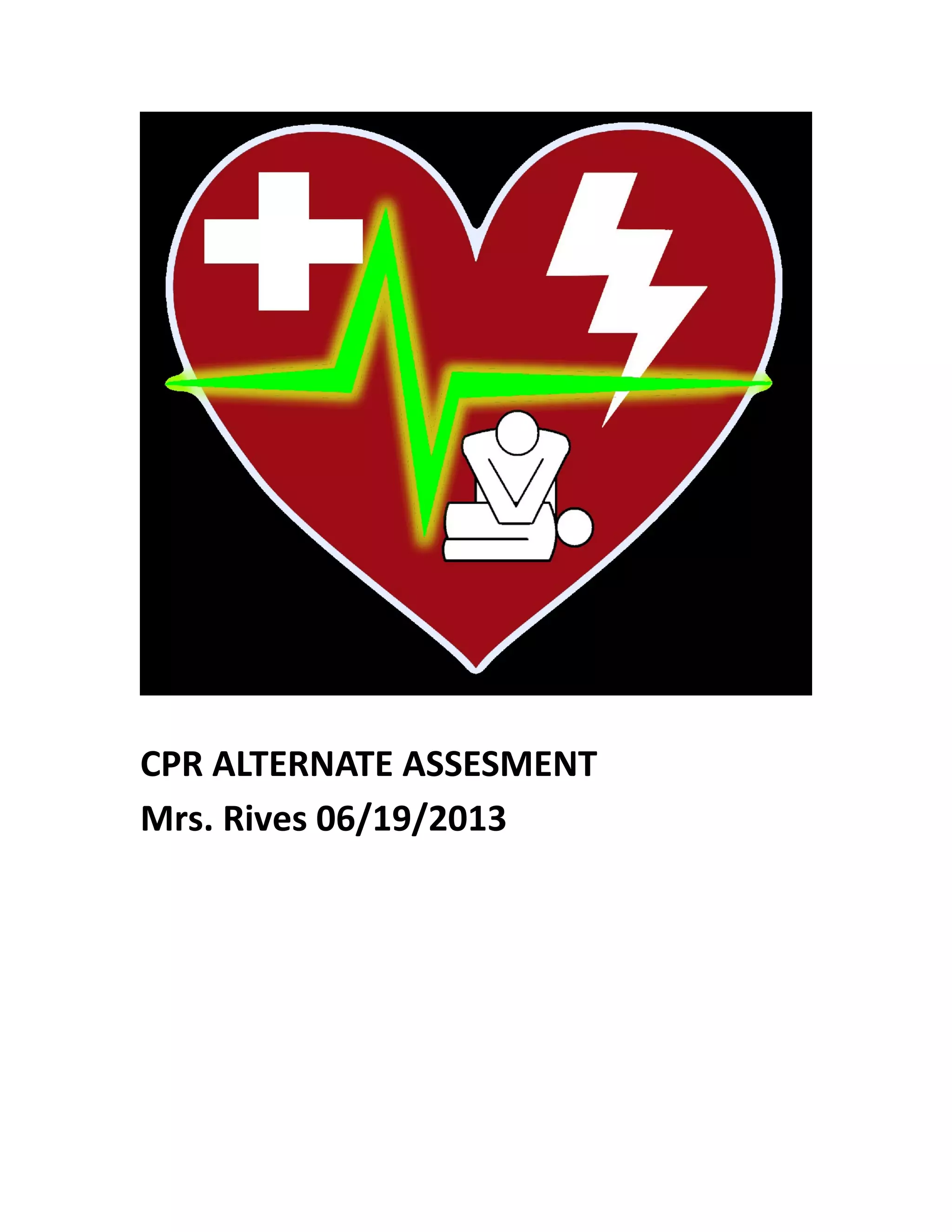 The document provides instructions for performing CPR on adults, infants, and children. For adults, the steps are to check breathing, call 911, perform 30 chest compressions at 100/min, give 2 breaths, and repeat until help arrives. For infants, the steps are to tap their shoulder, give 30 gentle chest compressions at 100/min using 2-3 fingers, clear the airway, and give 2 gentle breaths. For children, the steps are to use the heel of one or two hands for 30 chest compressions at 100/min, clear the airway, and give 2 breaths until help arrives.