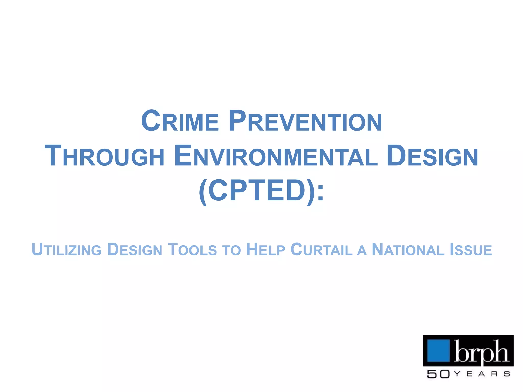 This document discusses Crime Prevention Through Environmental Design (CPTED) and how design can help reduce crime. It covers the evolution of CPTED since the 1970s and key events like school shootings that have shaped its use. The core elements of CPTED are discussed, including infrastructure, staffing, policies, and site analysis. Infrastructure elements that enhance safety through design are covered in depth, such as controlled access points, fencing, landscaping, and passive and electronic surveillance systems. The presentation concludes with a question and answer section.