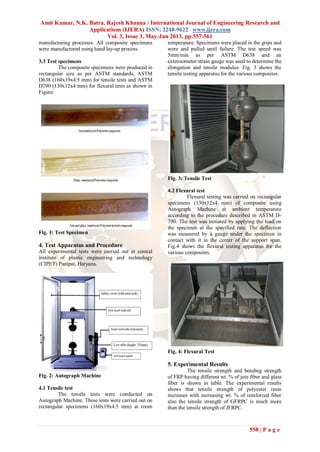 This study experimentally investigates the effect of hybridizing jute and glass fibers on the mechanical properties of polyester composites. Jute fiber reinforced polyester composites (JFRPC), glass fiber reinforced polyester composites (GFRPC), and various hybrid fiber reinforced polyester composites (HFRPC) were fabricated and tested. Tensile and flexural testing showed that HFRPC exhibited higher strength properties than JFRPC or GFRPC alone, due to the combined properties of both natural jute and synthetic glass fibers. In particular, composites with 2% jute fiber and varying amounts of glass fiber achieved comparable strengths to GFRPC at a lower cost. Therefore, hybridizing jute and glass