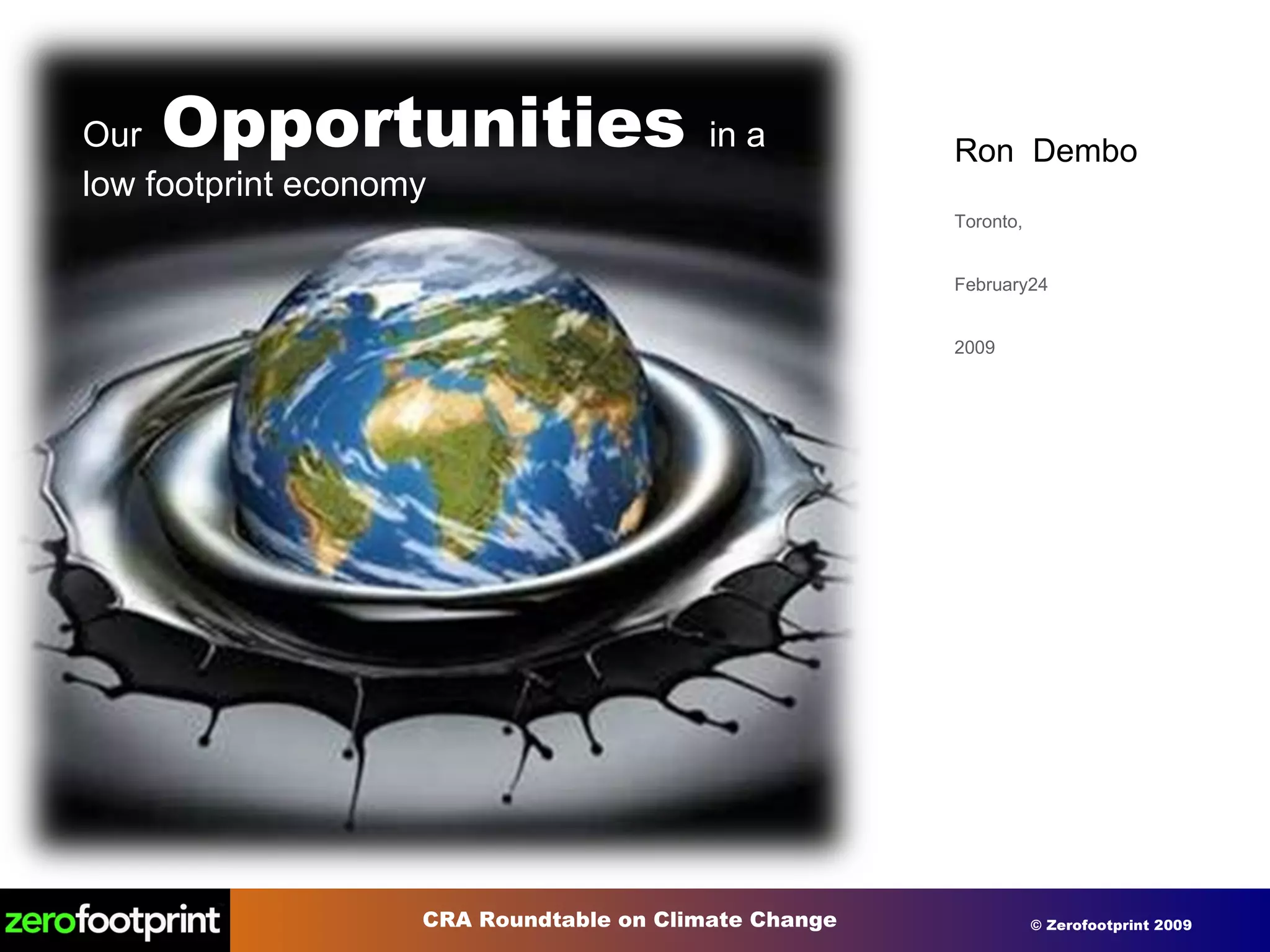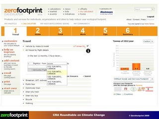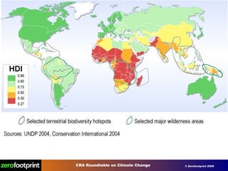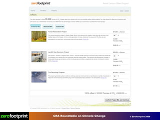 The document discusses the problems of climate change and high carbon footprints. It notes that human activities are the dominant influence on climate and have caused a mass extinction of species. Countries like Canada have very high per capita carbon emissions and waste. The document proposes several solutions like implementing carbon pricing, making buildings and energy use more efficient through smart technology, green credits programs, and offsetting remaining emissions through large scale projects.