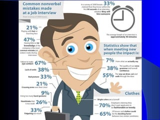 The document provides extensive guidance on how to prepare for and succeed in a job interview. It discusses researching the employer, knowing yourself and your strengths, proper interview attire, common interview questions, questions to ask the interviewer, negotiating salary, and practicing interview skills. The key aspects covered include dressing professionally, being knowledgeable about the employer, highlighting relevant qualifications, having well-thought answers prepared, maintaining good body language and etiquette, and following up after the interview.