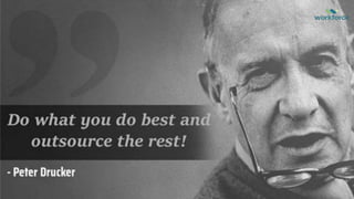 This document discusses outsourcing and the benefits and process of outsourcing business processes. It outlines the 7 key stages of an outsourcing process: 1) assessing business needs, 2) defining scope of work, 3) selecting a service provider, 4) negotiating a contract, 5) initiating the project, 6) managing service delivery, and 7) exiting contracts. It provides examples and details for each stage. Additionally, it discusses types of outsourcing, top reasons for outsourcing like cost reduction and efficiency gains, and common pitfalls to avoid in outsourcing. The overall document provides a comprehensive overview of how to properly plan and execute an outsourcing strategy for business processes.