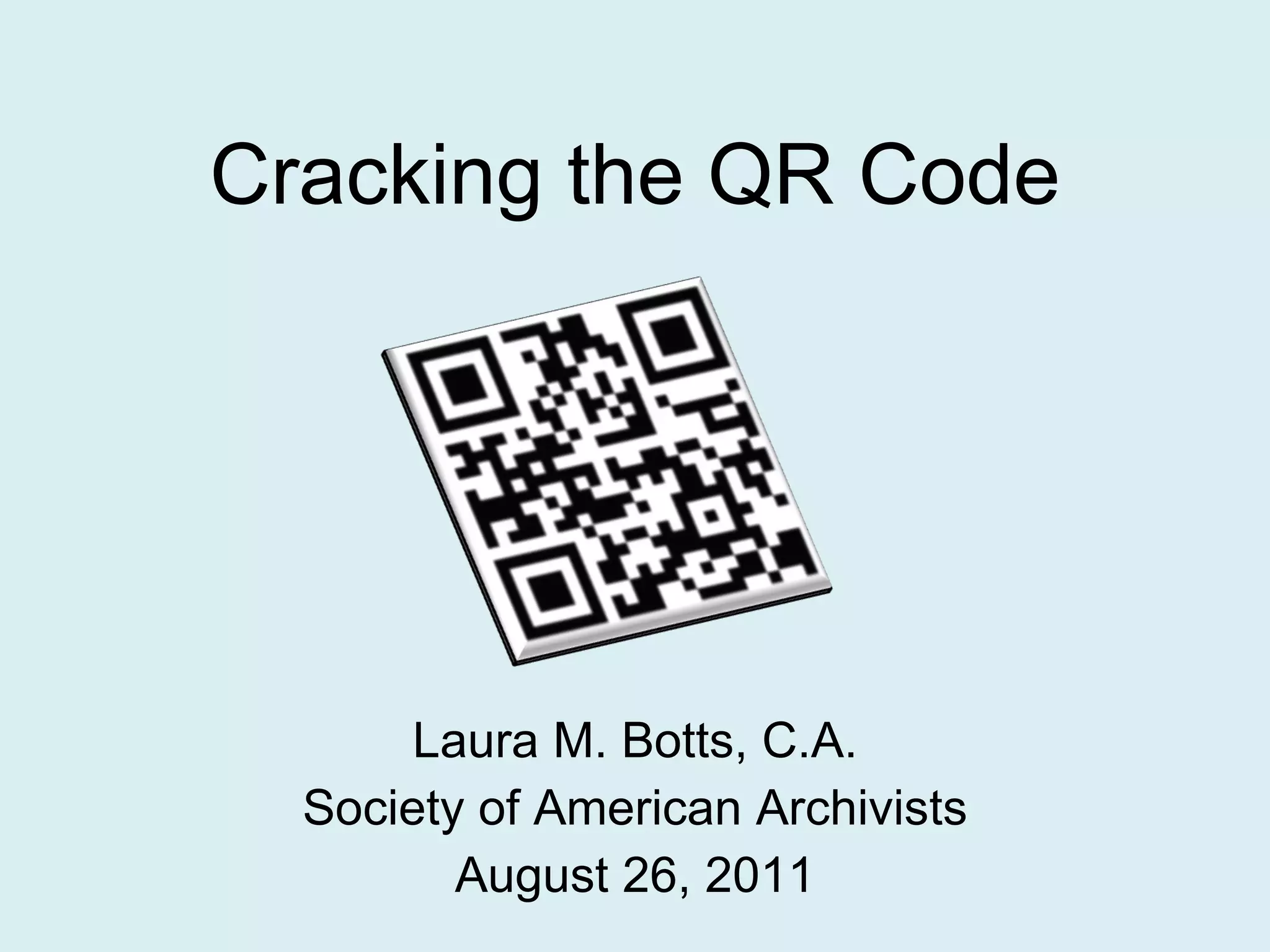 QR codes can hold more data than traditional barcodes and can be scanned from any angle using smartphone cameras. They allow inclusion of various types of data like web links, contact information, maps, and video. The document provides examples of how archives can use QR codes in exhibits, finding aids, maps, and surveys to provide additional digital content to patrons. It also explains how to create and scan QR codes using free online generators and smartphone apps.