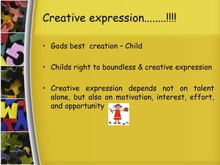 The document emphasizes the importance of nurturing every child's creative expression, advocating for equal opportunities across various talents beyond just music and dance. It introduces 'crafted kids,' an initiative aimed at providing a platform to showcase diverse talents like drawing and essay writing. The initiative seeks to recognize and support all forms of creativity while addressing the existing gaps in opportunities for children.