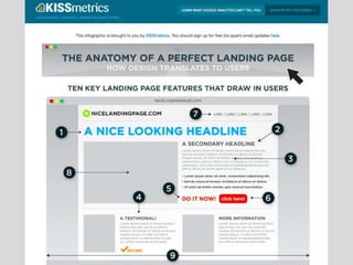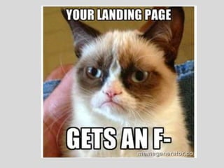 The document outlines essential strategies for effective online marketing, emphasizing the necessity of crafting a compelling message that resonates with consumers and includes a clear call-to-action. It discusses the importance of landing pages for lead generation and provides essential elements and tips for creating effective marketing content. Additionally, it highlights the significance of testing and optimizing marketing efforts across various platforms.