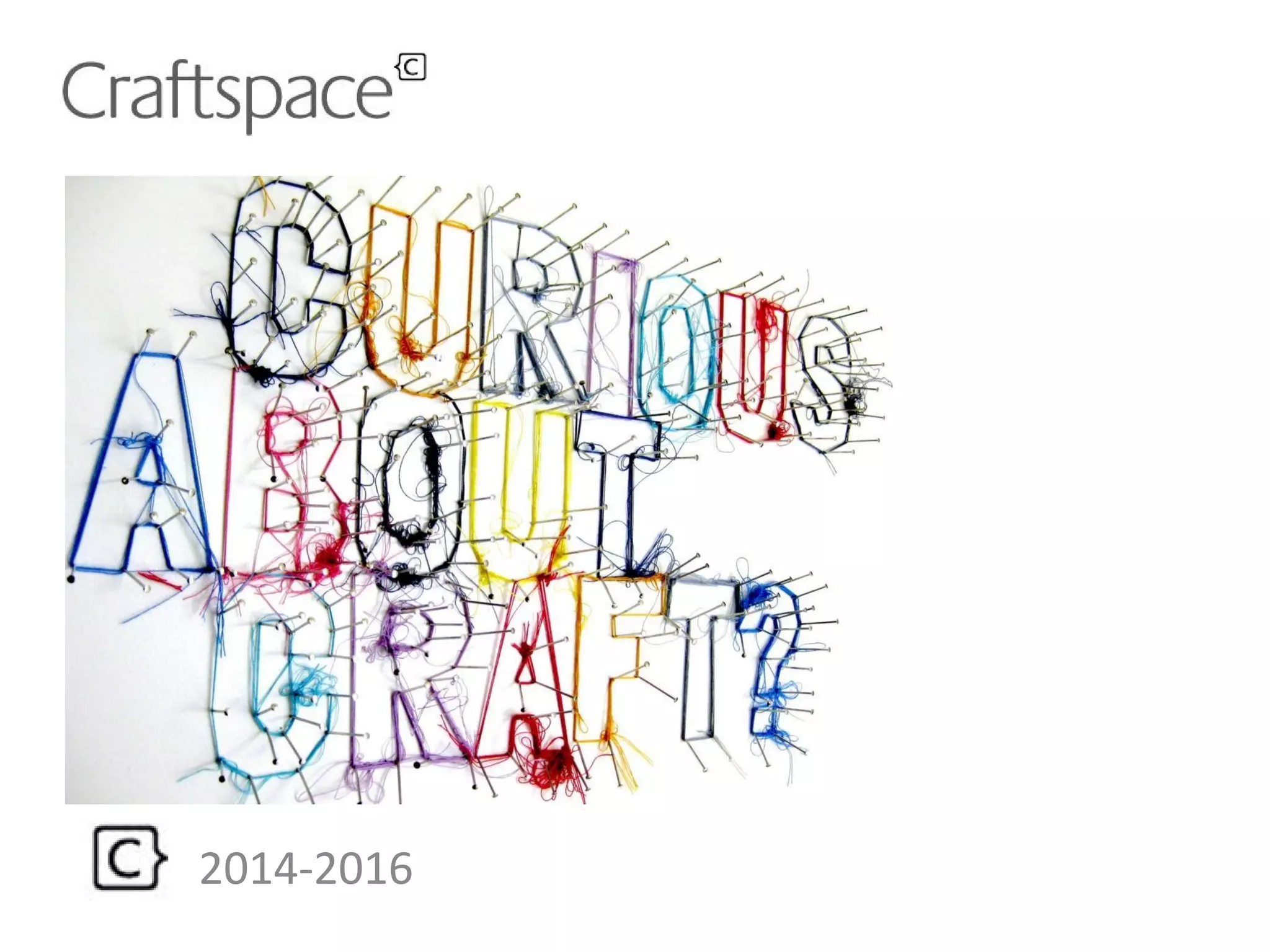 The document outlines the work of an organization that commissions contemporary craft projects, connects artists to diverse communities, and highlights the social, cultural, and economic value of craft. It discusses outcomes for artists such as career development and new audiences, as well as outcomes for communities like creative learning, well-being, and social cohesion. Examples of projects are provided that engaged vulnerable youth, migrant women, older adults, and showcased self-taught artists through exhibitions and residencies in various community venues.