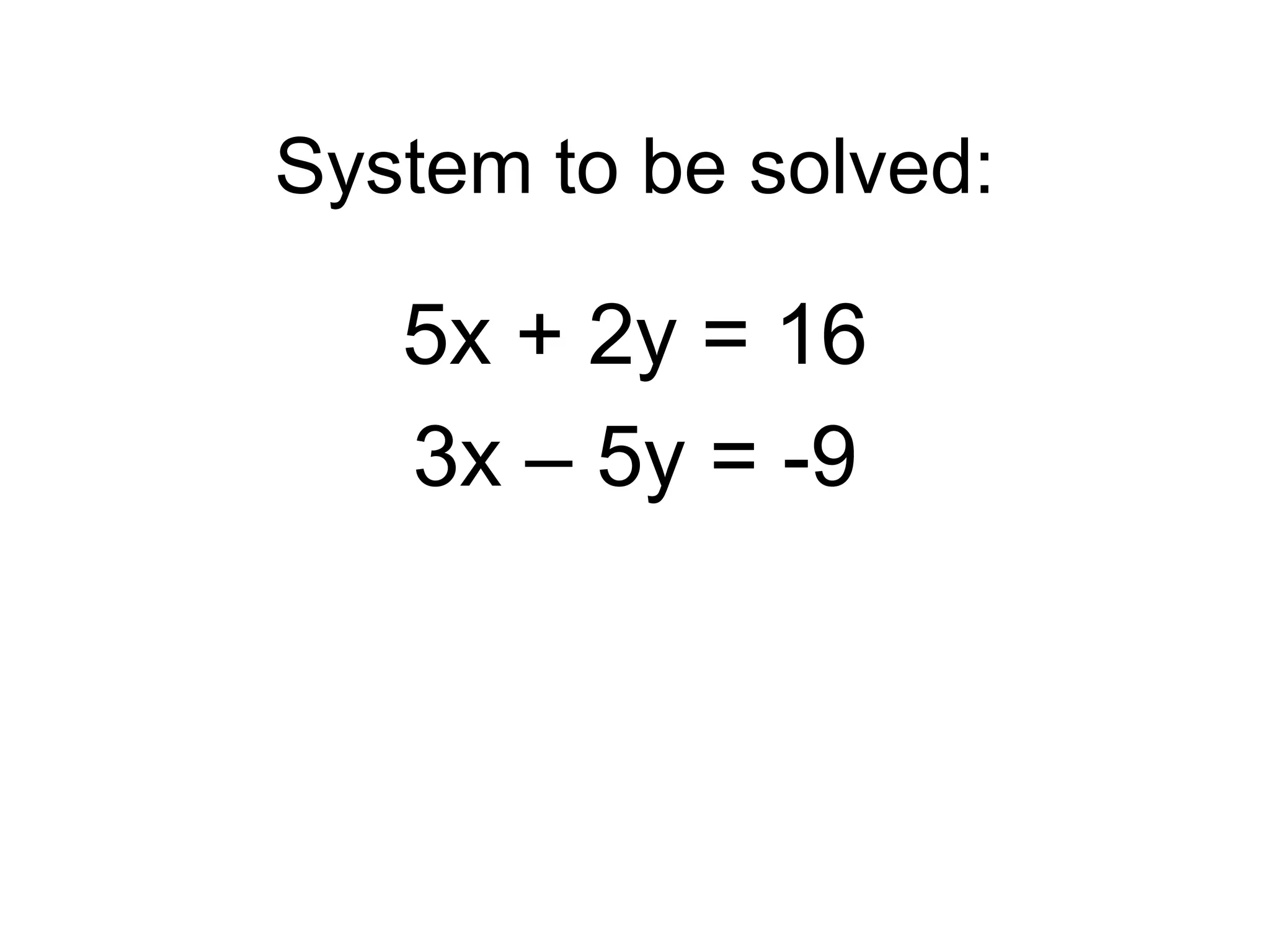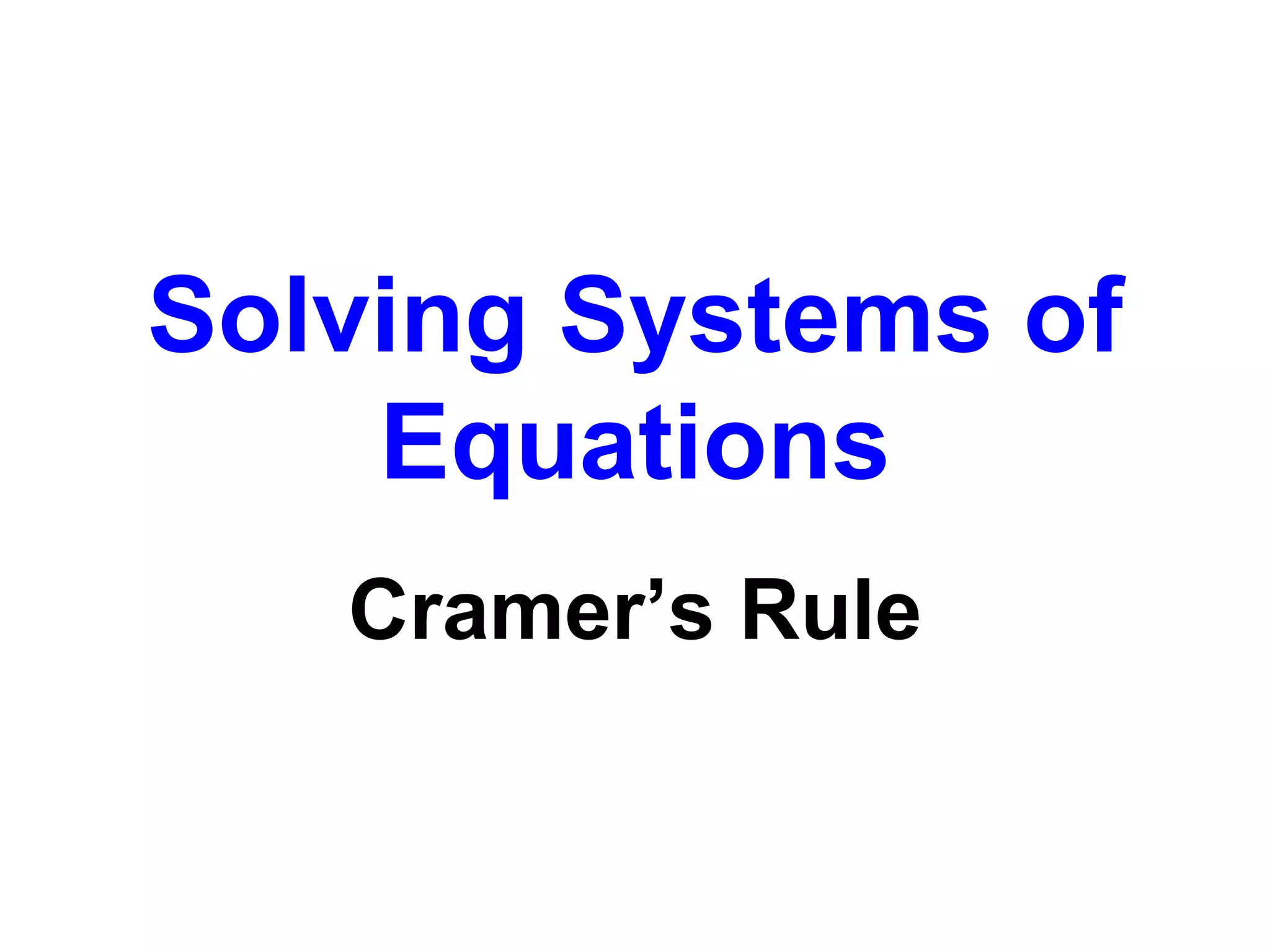 The document describes using Cramer's rule to solve a system of two equations with two unknowns (5x + 2y = 16, 3x - 5y = -9). It shows setting up the equations in a matrix and calculating the determinants to find that the solutions are x=2 and y=3.