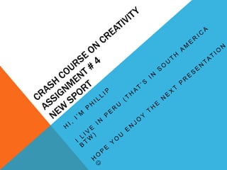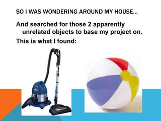 The document describes an idea for a new sport called "BlowBall" where a small floating beach ball is kept aloft using a handheld vacuum cleaner. One person uses the vacuum to blow air under the ball to hit it back and forth like volleyball against an opponent on a court of to-be-determined size. The sport is inspired by seeing a beach ball levitated by a reversed vacuum and the creator hopes it could gain popularity like the unlikely sport of curling.