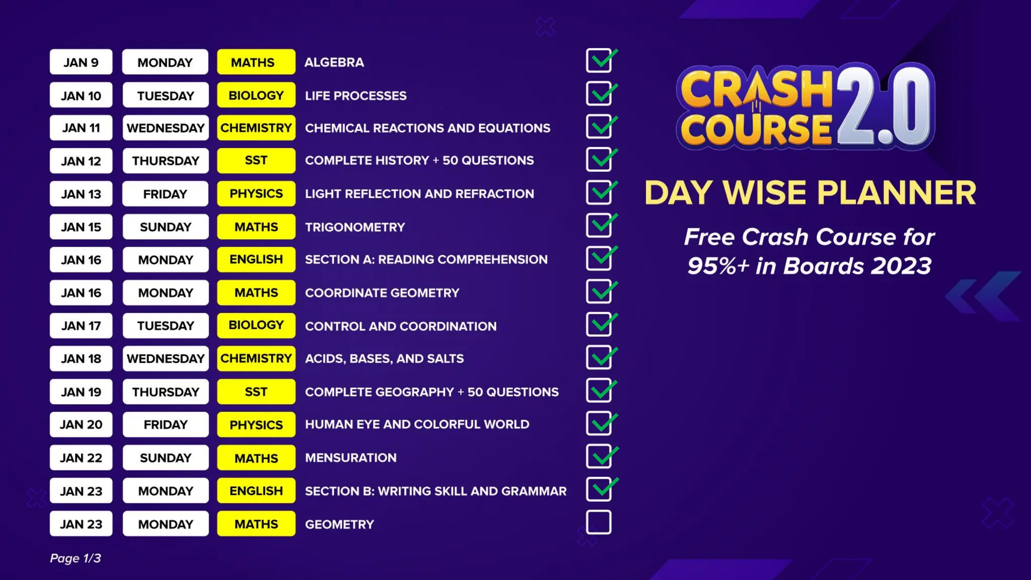 Unit 3 covers the fundamentals of coordinate geometry, including the distance formula, section formula, and midpoint formula. Several questions on finding distances, coordinates, and area of geometric figures are presented for practice. Additionally, details about an upcoming exam and the opportunity for scholarships are included.