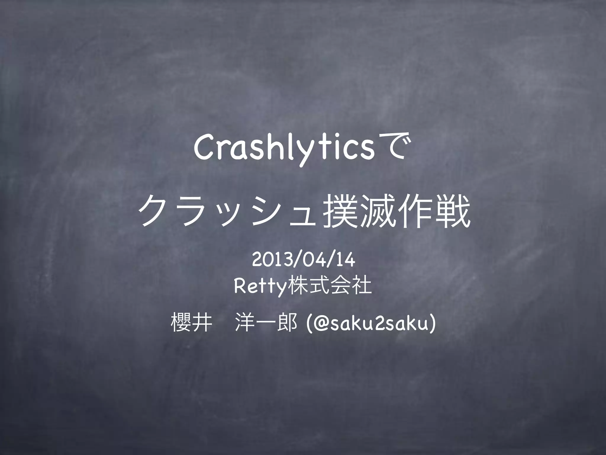 Crashlyticsで クラッシュ撲滅作戦 2013/04/14 Retty株式会社 櫻井 洋一郎 (@saku2saku)