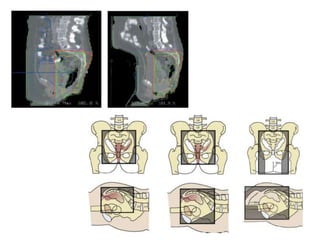 This document discusses updates in radiation therapy for colorectal cancers. It covers clinical features and prognostic markers for different locations of colorectal cancer. It discusses the goals and need for a multidisciplinary approach in treating rectal cancers. It compares pre-operative vs postoperative chemoradiation and short course vs long course radiation. It also discusses omitting adjuvant chemotherapy for some patients and contouring guidelines for radiotherapy planning.