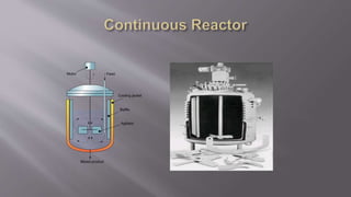 Chemical reaction engineering (CRE) focuses on the rates and mechanisms of chemical reactions and reactor design, including key factors like phase, temperature, pressure, and agitation. It covers four reactor types: batch, continuous stirred tank, tubular, and packed bed, each with distinct characteristics regarding inflow and outflow. Material and energy balances are crucial for understanding reactor performance, particularly concerning temperature gradients and composition changes.