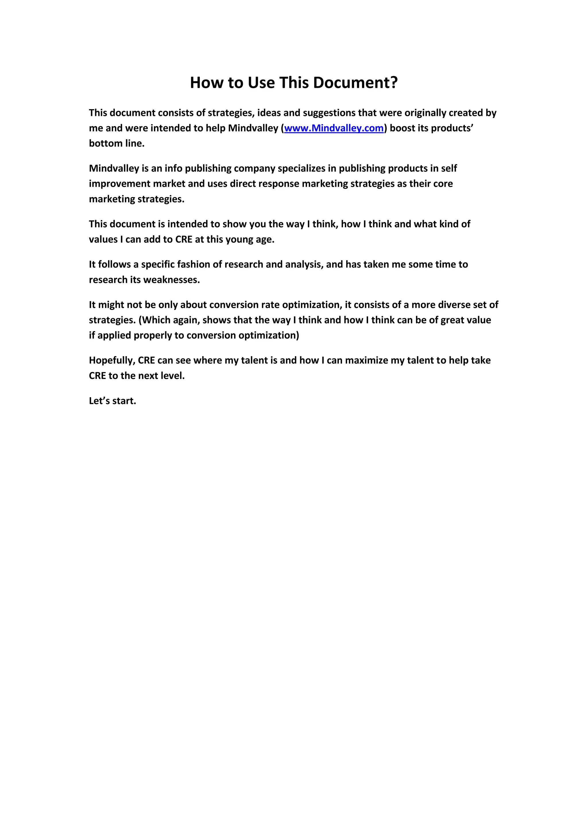 The document provides suggestions for how Mindvalley, an info publishing company, can improve profits through value addition strategies. The author proposes segmenting customers based on geography, passion levels, age and charging different prices tailored to each segment. They also suggest breaking up physical products into modules that are delivered over time rather than all at once, to encourage ongoing consumption and repeat purchases. The strategies are intended to help Mindvalley stay ahead of competitors and maximize profits through innovative pricing and delivery approaches.