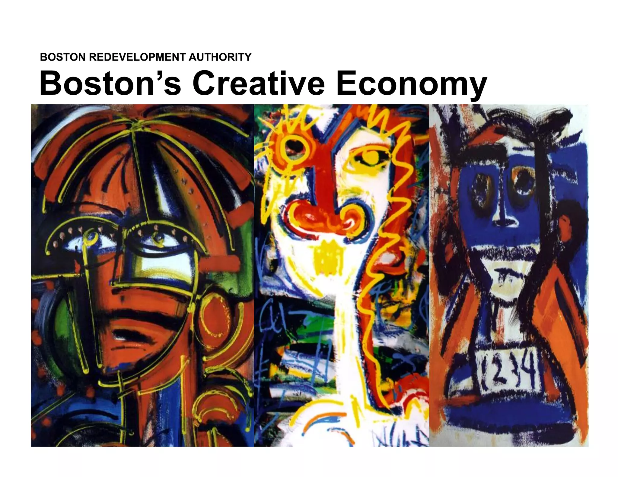 This document provides an overview of Boston's creative economy. It begins by defining the creative economy using industries such as film, music, publishing, and visual arts. It then discusses how creative industries contribute economically by creating jobs, revenue, and enhancing communities. The document notes that Boston ranks highly in attracting creative talent and compares favorably to other major cities. It concludes by stating Boston is well-positioned to benefit from its strong creative economy.