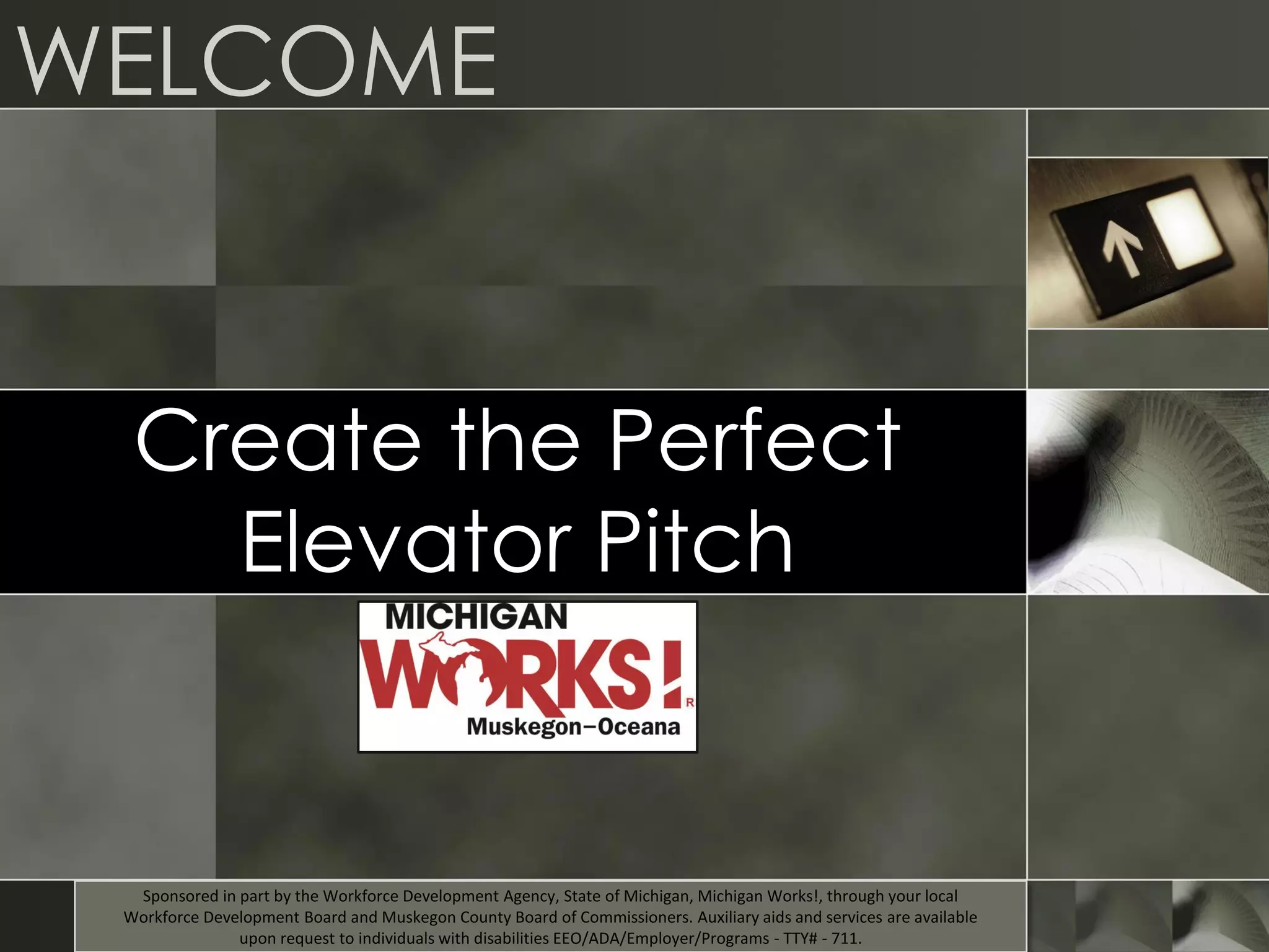 This document provides guidance on creating an effective elevator pitch. An elevator pitch is a 30-second speech that tells a potential employer who you are, what you do, and why you would be a great employee. It is important because you only have a short time to make a good impression. The document then lists 10 steps to create a successful elevator pitch, including identifying your target, writing it down, eliminating jargon, practicing frequently, and tailoring your pitch for different audiences.