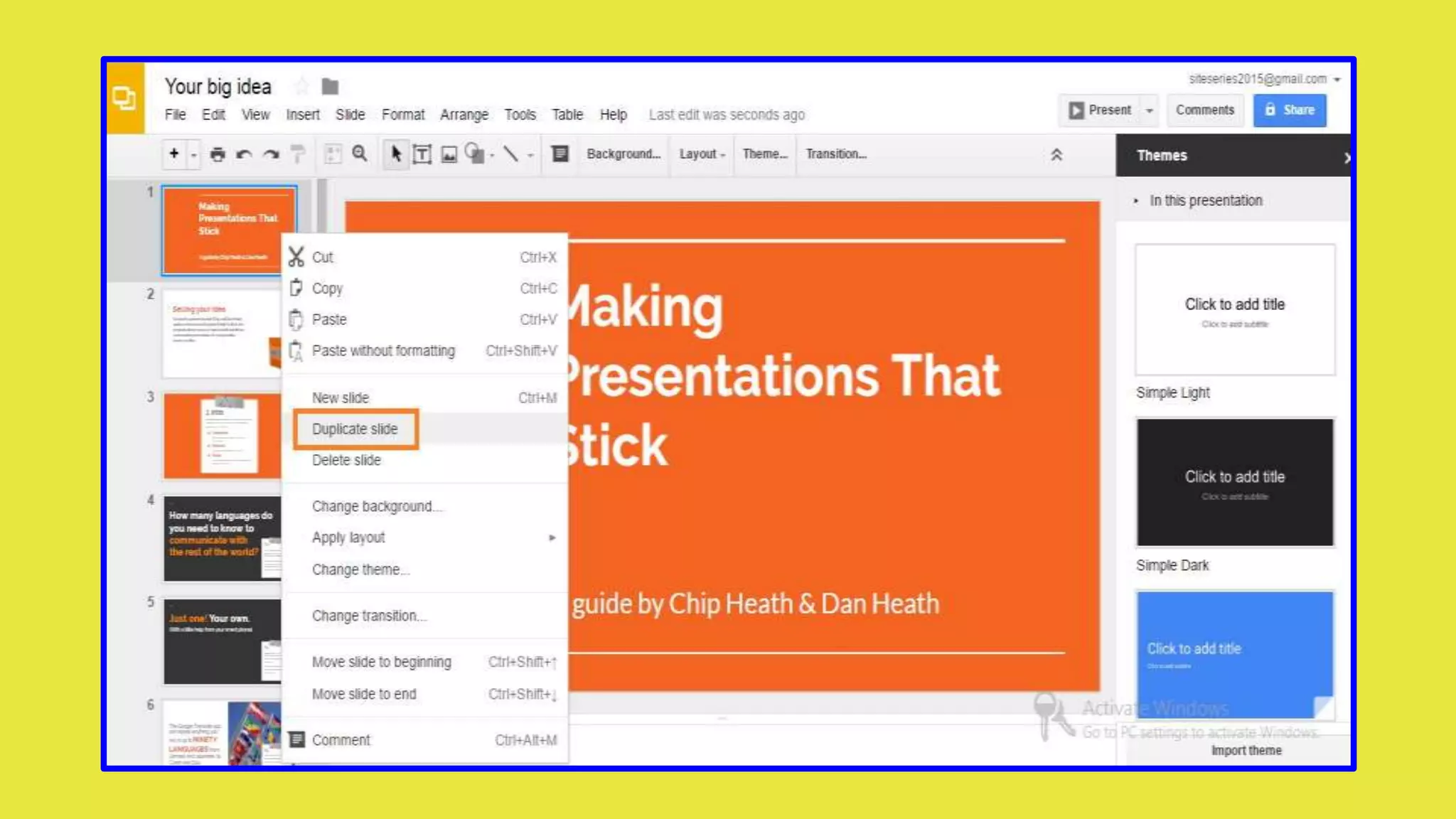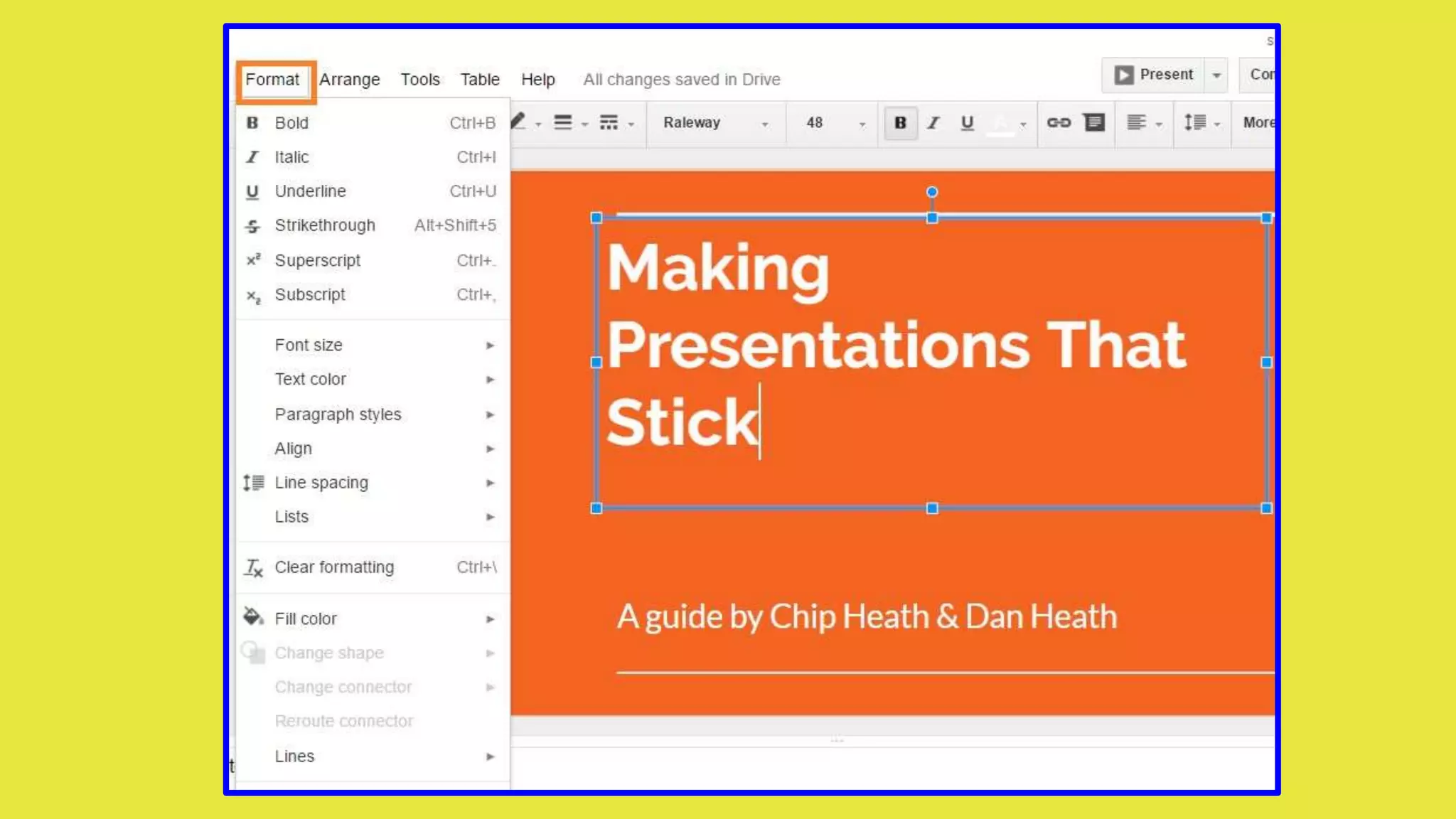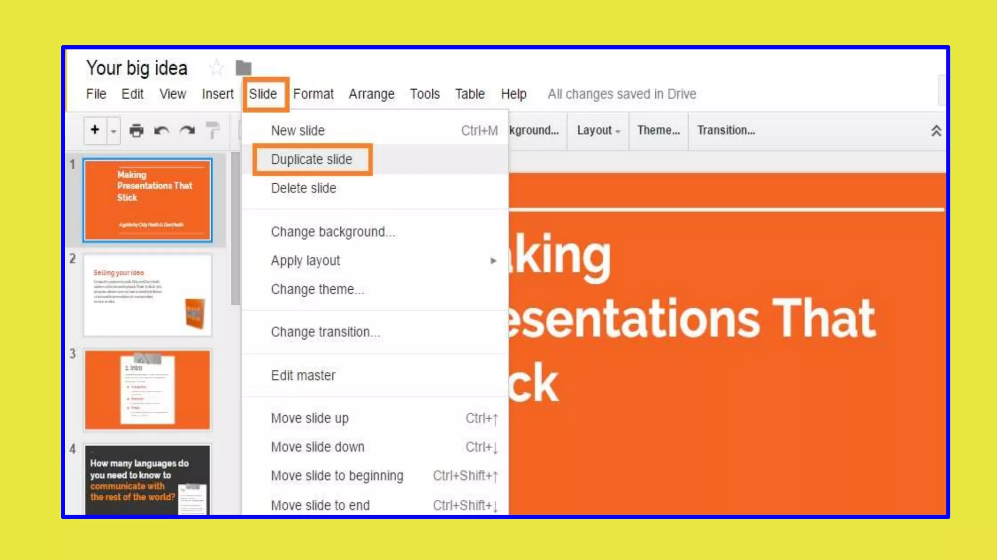 Google Slides allows users to create and edit presentations. The basics section explains how to create a new blank presentation or choose from theme and layout templates. Additional sections cover how to edit themes and layouts, insert slides, duplicate slides, add and organize slides, format text and objects, change slide size, view presentations, make copies of presentations, rename files, and arrange objects. All changes are automatically saved in Google Slides.