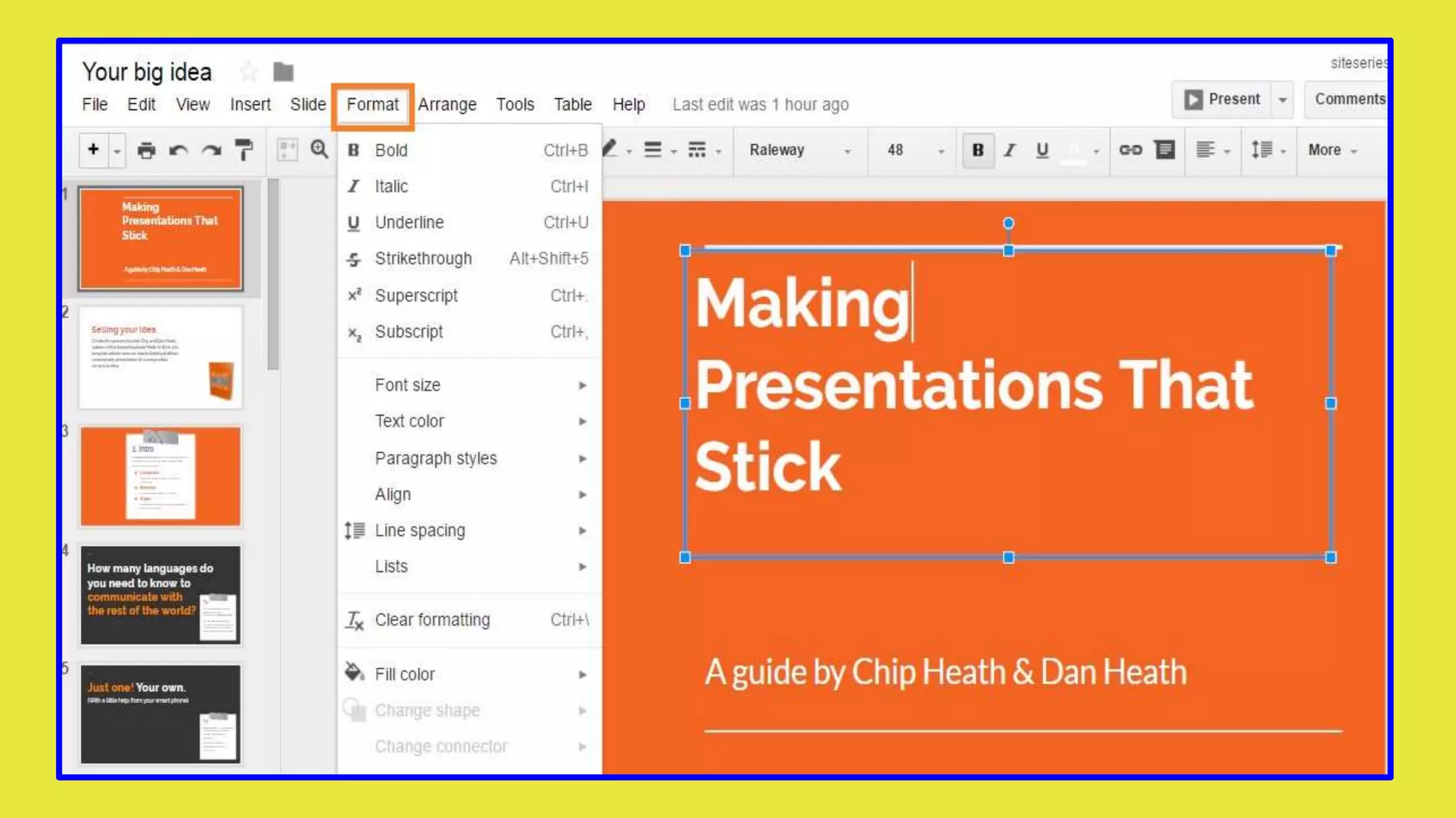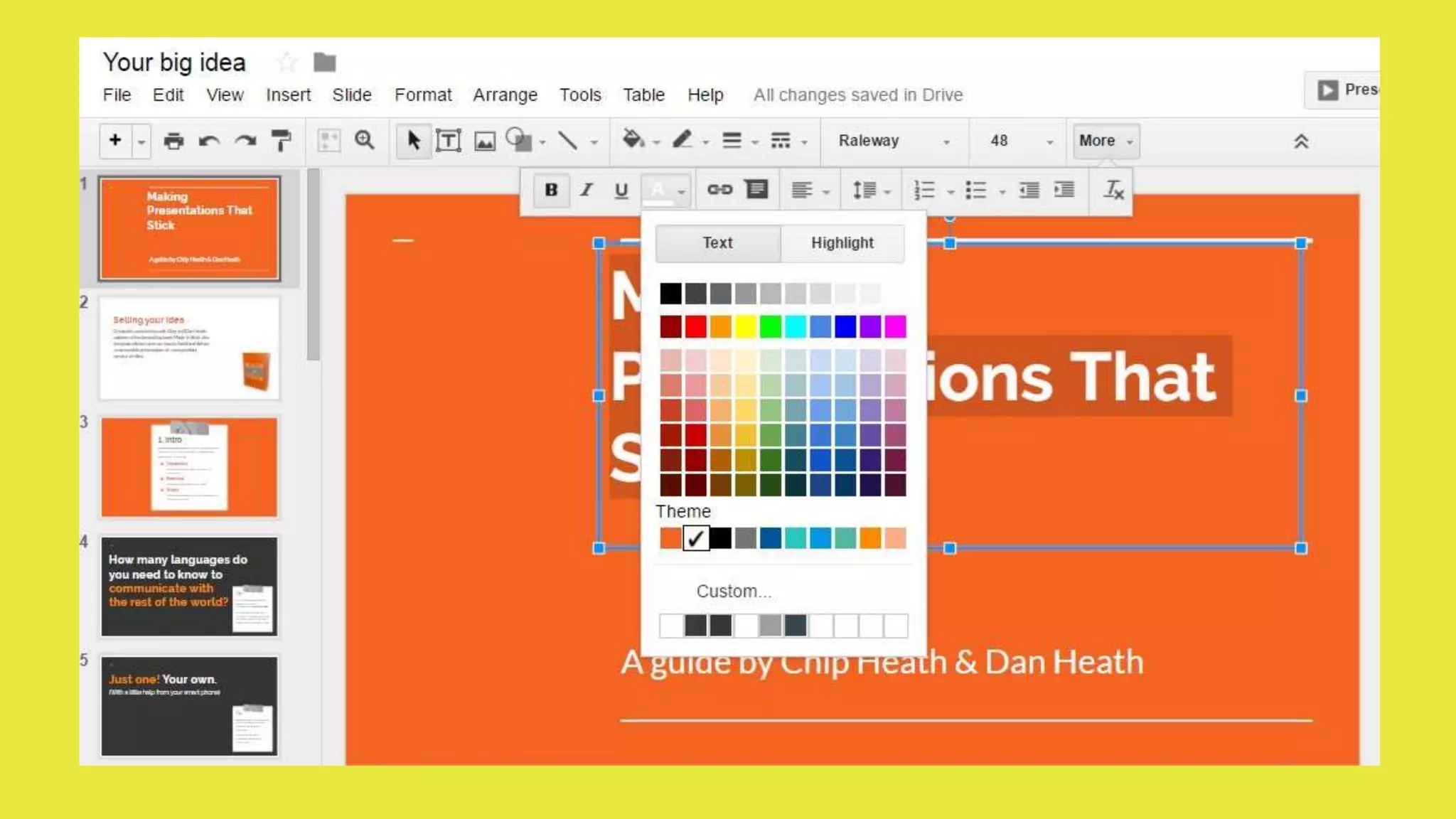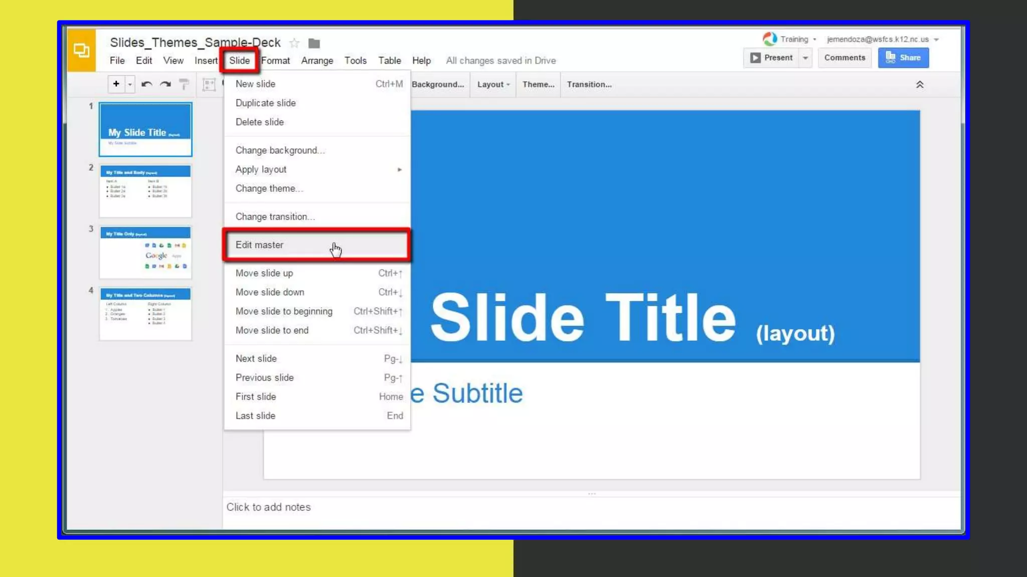 Google Slides allows users to create and edit presentations. The basics section explains how to create a new blank presentation or choose from theme and layout templates. Additional sections cover how to edit themes and layouts, insert slides, duplicate slides, add and organize slides, format text and objects, change slide size, view presentations, make copies of presentations, rename files, and arrange objects. All changes are automatically saved in Google Slides.