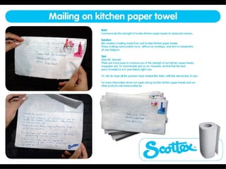 The document provides three website URLs related to creative mailings and goodies, promotional products, and online sales. The URLs include www.presentpresents.com for creative mailings and goodies, www.verkopen.blogspot.com about promotional products, and www.salesonline.nl for online sales.