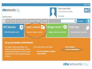 To create a network on the NHS networks website, you first need to register and log in. You then provide the name of your network, a description, keywords, contact details, and optionally a logo. Next, you select the sections for your network and publish it. To add content, you access the toolbox by clicking on your network name and selecting toolbox. For more help, you can contact enquiries@pcc-cic.org.uk.