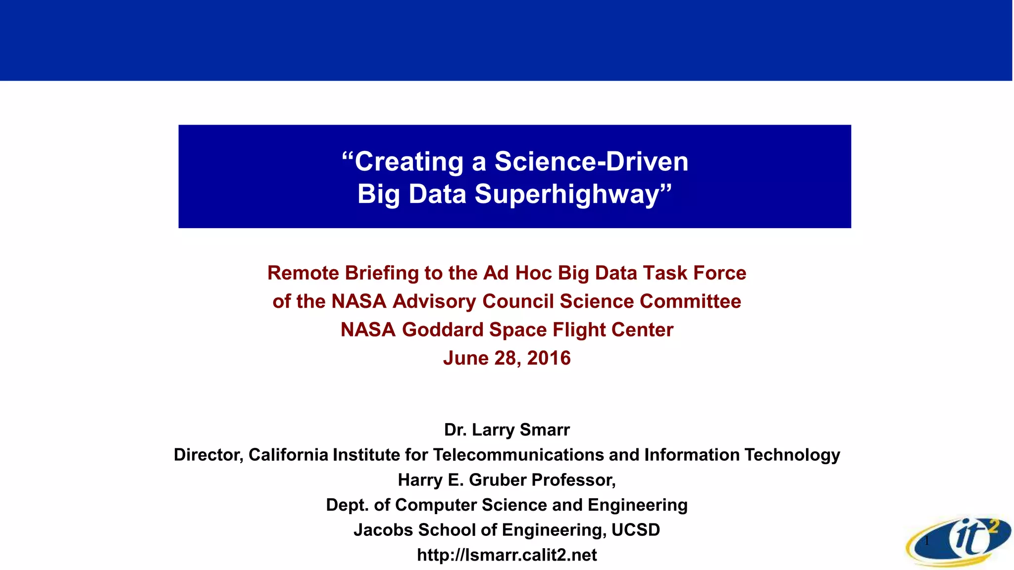 The document outlines the vision and progress of the Pacific Research Platform, which aims to create a high-performance, science-driven big data infrastructure using optical fiber networks to connect various data generators and consumers across campuses. It highlights significant projects and collaborations over 15 years, including the NSF-funded initiatives and the development of Science DMZs, facilitating high-speed data transfers for research purposes. Future steps include enhancing network capabilities and expanding data analysis frameworks to support large-scale, data-intensive scientific research.