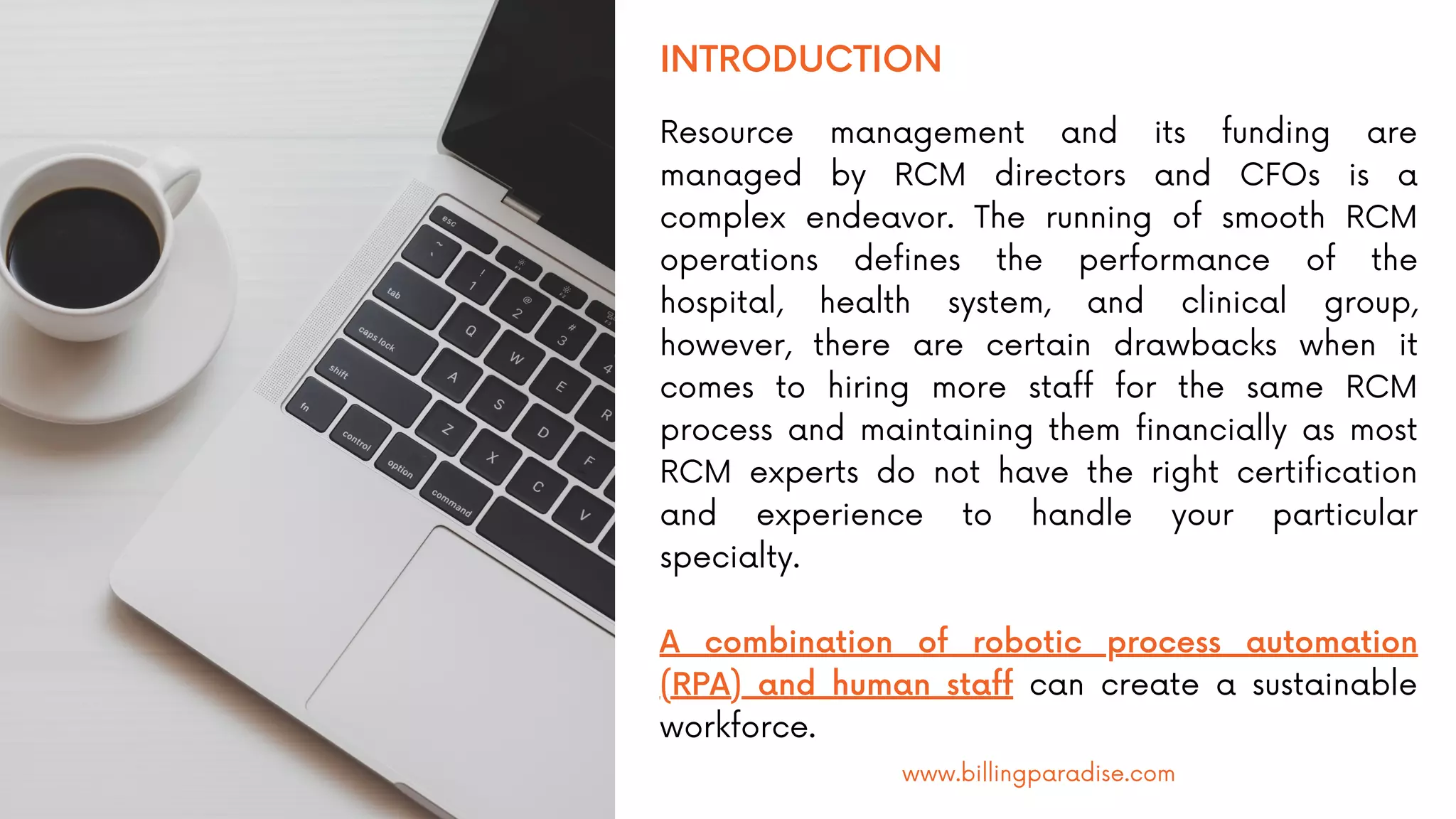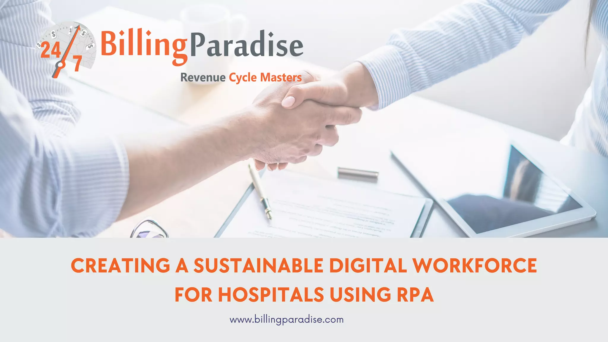This document discusses the implementation of robotic process automation (RPA) in hospitals to create a sustainable digital workforce for revenue cycle management (RCM). It highlights how RPA can handle repetitive tasks, allowing human staff to focus on higher-value activities, improving operational efficiency, and ensuring better patient care. The piece emphasizes the benefits of a hybrid workforce and the necessity of monitoring RPA to maintain accuracy and efficiency in healthcare operations.