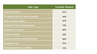 The document outlines an interactive content strategy emphasizing the importance of engaging customers through diverse content types like quizzes and assessments. It discusses the concept of 'digital body language' to collect and analyze buyer behavior data for enhancing customer experience. The strategy involves leveraging interactive content for better insights into individual buyers and utilizing various data collection methods to inform future marketing efforts.