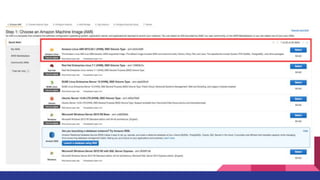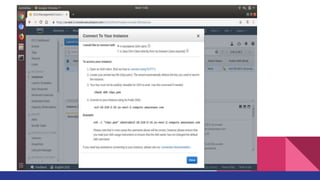 Amazon EC2 is a web service that provides secure and resizable compute capacity in the cloud. It allows users to launch virtual machines called instances. The key steps are to sign up for AWS, launch an EC2 instance by choosing an AMI, instance type, and security group, configure storage and tags, connect to the instance, and terminate it when finished. EC2 offers benefits like elastic web-scale computing, complete control, flexibility, reliability, security, and low cost.