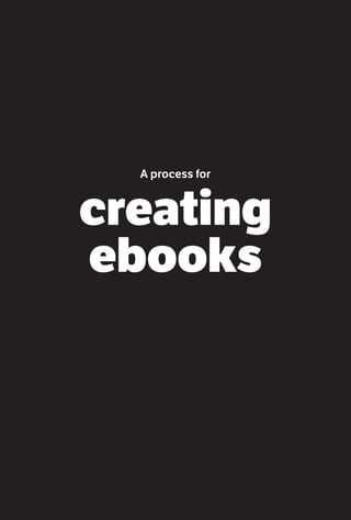 1) The document provides instructions for creating an ebook, including gathering materials like a finalized manuscript and optimized images, setting up the file structure and metadata in an ePub editor, adding content and formatting pages, and converting the ePub file to ePub and Mobi formats for distribution.
