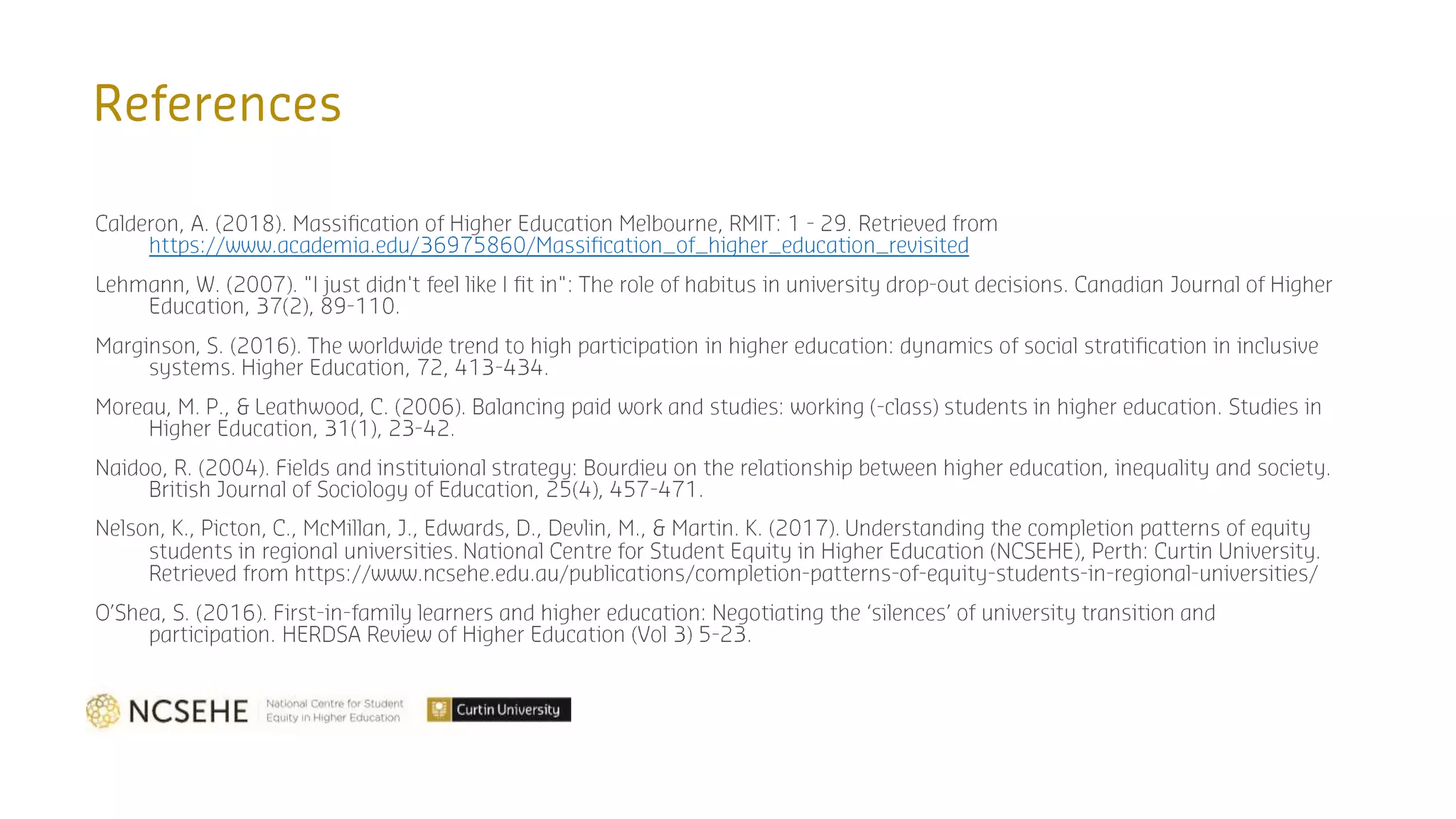 The document discusses findings and strategies for creating equitable learning environments in higher education for underrepresented student groups in Australia, particularly focusing on regional and remote communities. It highlights the importance of understanding diverse student needs, mental wellbeing, and community support systems to improve student retention and success. Key insights include the unique challenges faced by low socio-economic, disability, and Indigenous students, as well as strategies for enhancing their educational experience.