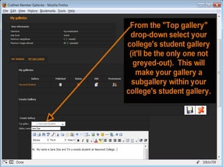 After logging in, the user should click the "My Galleries" link at the top of the page to access their galleries. The "My Galleries" link can be found at the top of the page after logging in.