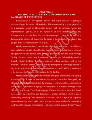 1) The language of instruction is crucial for delivering quality education as it is the medium through which knowledge is transmitted between teachers and students.