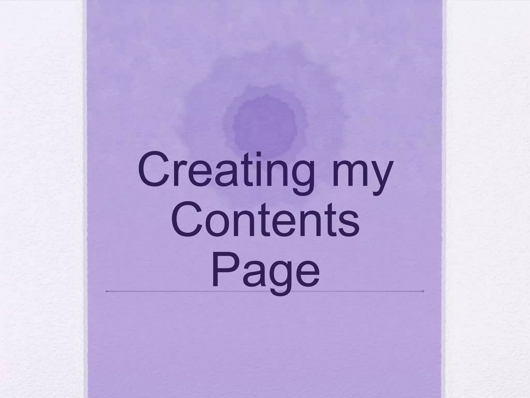 1) Inserting the word "contents" in the magazine's font within a text box and positioning it.