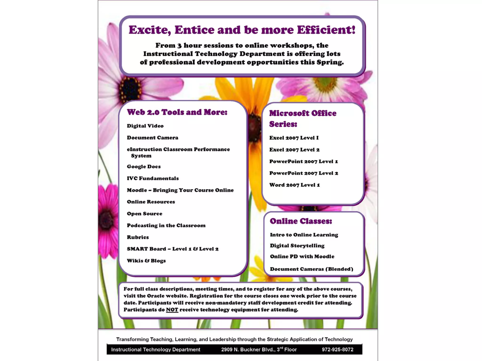 This document provides resources for designing online courses, including components to include, a sample course template, an evaluation checklist, and a self-assessment. It emphasizes designing the course around the desired end result and discusses online learning in school districts, asking what it currently looks like and what educators hope for it.