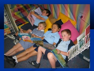 The document discusses how creating print-rich environments and encouraging free voluntary reading leads to improved reading achievement, comprehension, vocabulary, and writing ability. It summarizes several studies that found correlations between reading achievement and factors like the number of books students have access to, the amount of time parents spend communicating with their children, and how engaged students are with reading. The document provides recommendations for what families can do to support reading, such as providing access to reading materials at home, allowing choice in materials, providing dedicated reading space and time, and supporting reading through activities like reading aloud, being role models, and talking about books.