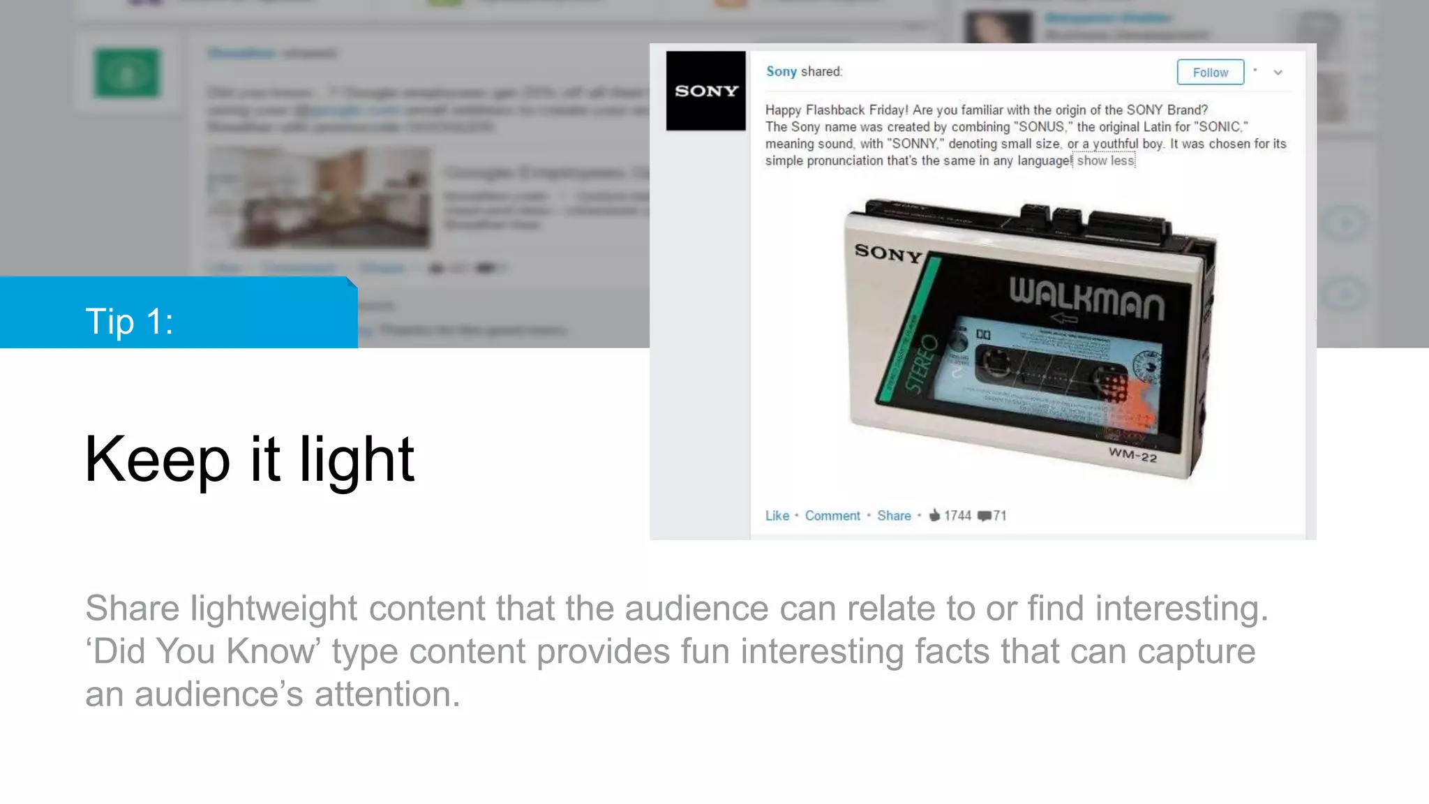 1. Share lightweight, interesting facts and "Did You Know" type content to capture audiences' attention.