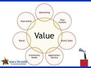 The document outlines a presentation by C. David Gammel on idea generation for creating association websites, emphasizing internal and external sources of ideas. It highlights the importance of strategic online outcomes and practical considerations for web strategy implementation. Gammel encourages optimism in generating valuable ideas and provides contact information for further engagement.