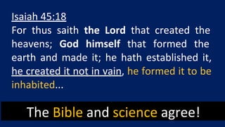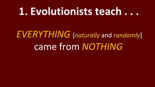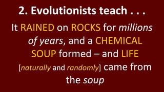 The document promotes a seminar conducted by the Creation-Education Ministry, aiming to educate parents on how to protect their children from perceived fallacies in school textbooks regarding evolution and science. It emphasizes the compatibility of biblical teachings with scientific discoveries, arguing that the Bible has preceded modern scientific insights in many areas. The document also presents various claims linking scripture to scientific facts and encourages parents to ensure their children's education is accurate.