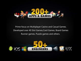 The document outlines a workflow aimed at achieving project goals with high quality, timely delivery, and controlled costs. It highlights the benefits of offshore game development outsourcing services, which can reduce execution costs by up to 50%. This allows partners to concentrate on sales and business expansion without the difficulties of project management and delivery.
