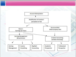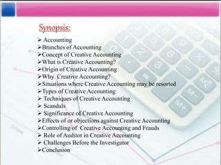 This document provides an overview of creative accounting, including: