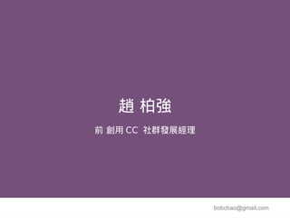 本文件介绍了创用CC(Creative Commons)协议的基本概念和应用实例,强调创意的传播和使用的重要性。文中提到各种创作形式的授权方式和标示规则,以实践促进创意流通。相关的资源和创作实例展示了如何有效利用创用CC素材。