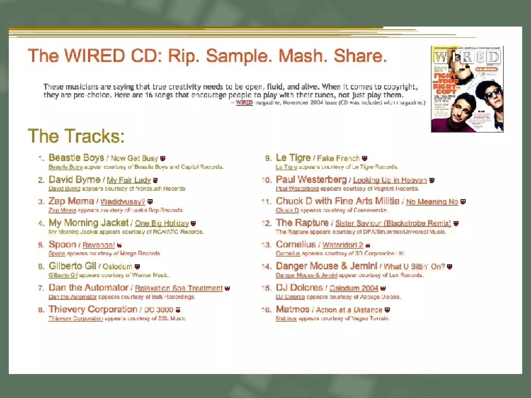 Creative Commons is a non-profit organization dedicated to expanding the range of creative works available for others to legally build upon and share. It has offices in San Francisco, Berlin, and Johannesburg. Creative Commons develops standardized copyright licenses that creators can choose to apply to their works, labeling them for certain uses like non-commercial sharing and adaptation. Their goals are to promote a balanced copyright system and address issues around copyright and the Internet.