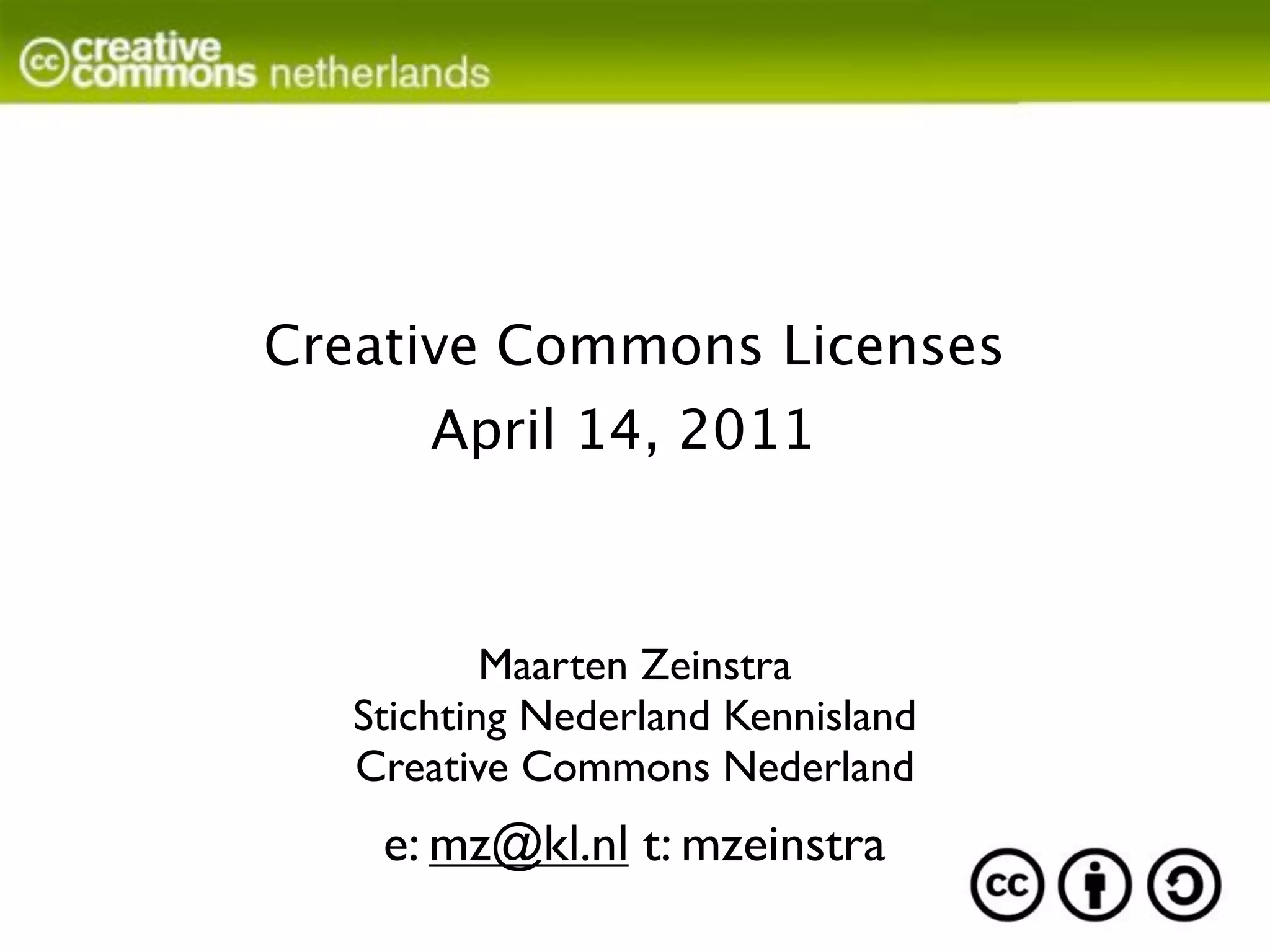 Creative Commons licenses provide alternatives to traditional copyright for authors and creators to grant permissions for others to use their work. The licenses offer options for allowing commercial use, modifications, and sharing derivatives under the same license (Attribution, NonCommercial, NoDerivatives, ShareAlike). Licenses are granted to the public and last as long as copyright, though authors retain moral rights. Works can be licensed by adding attribution and license information. Creative Commons does not enforce licenses but provides tools and education to help authors share their work while maintaining control over how it is used.